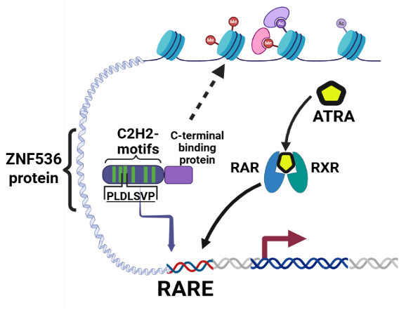 Ген ZNF536 кодирует транскрипционный фактор с преимущественной экспрессией в нейронах коры и гиппокампа, а мутации в этом гене связаны с разными психическими расстройствами. Так, редкие de novo мутации с потерей функции белка (protein-truncating variants, PTV) ассоциированы с расстройствами аутистического спектра, тогда как полногеномные ассоциативные исследования (GWAS) идентифицировали общие интронные варианты, связанные с риском шизофрении.